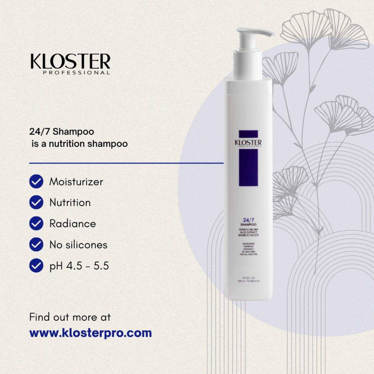 شامپو 24/7 کلوستر(24/7shampoo) یک شامپوی مغذی است که به طور خاص برای انواع مو طراحی شده است. ترکیبی از مواد مغذی و سیستم آبرسانی آن از موها در برابر اکسیداسیون محافظت می کند، فیبر مو را تغذیه کرده، تولید روغن طبیعی مو را افزایش می دهد که مو را از ریشه تا نوک نرم می کند.